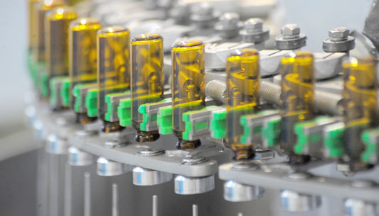 該線由QCK80型立式超聲波洗瓶機、ASMZ620/42型遠紅外滅菌干燥機、DGF16/24型口服液灌裝軋蓋機三臺單機組成,分為清洗、干燥滅菌和灌裝封口三個工作區(qū),全線可聯(lián)動生產(chǎn),也可單機使用??赏瓿闪芩?、超聲波清洗、機械手夾瓶、翻轉(zhuǎn)、沖水、沖氣、預(yù)熱、烘干滅菌、冷卻、灌裝、理蓋、戴蓋、軋蓋等工序。
